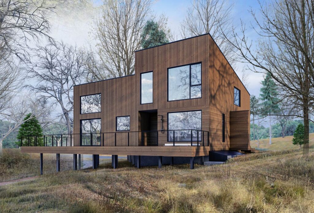 Model 77 stands as a striking example of modern architecture in harmony with nature. Elevated on stilts and wrapped in vertical wooden cladding, this residence makes a bold visual statement while responding elegantly to its sloped surroundings. Its sharp geometry is softened by the warmth of natural materials, allowing it to blend effortlessly into the […]