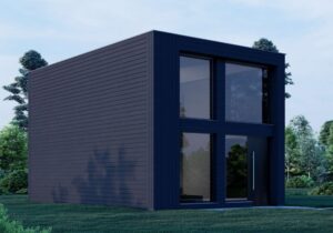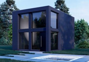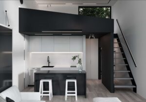 This two-bedroom ADU redefines what it means to live in a compact yet luxurious space. Spanning 777 sq. ft., this flat is crafted for those who appreciate the beauty of clean lines and functional design. The expansive black exterior, contrasted by natural wood slats, gives the home a striking, modern edge that blends harmoniously with its surroundings.