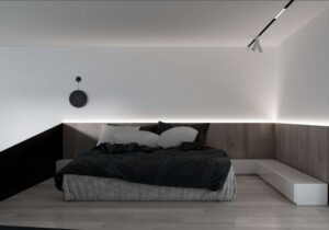 The living area transitions effortlessly, reflecting the dynamic needs of everyday life. Plush seating and soft textures make it a cozy haven during the day, while subtle design choices allow the room to transform into a tranquil sleeping area at night. Each bedroom is thoughtfully placed to provide privacy without sacrificing the flow of the space.